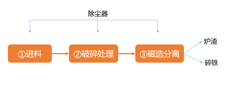 Adopts a multi-stage crushing system to decompose slag into particles below 10mm, releasing the metal